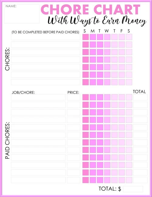 Chore chart with paid chores – Pink