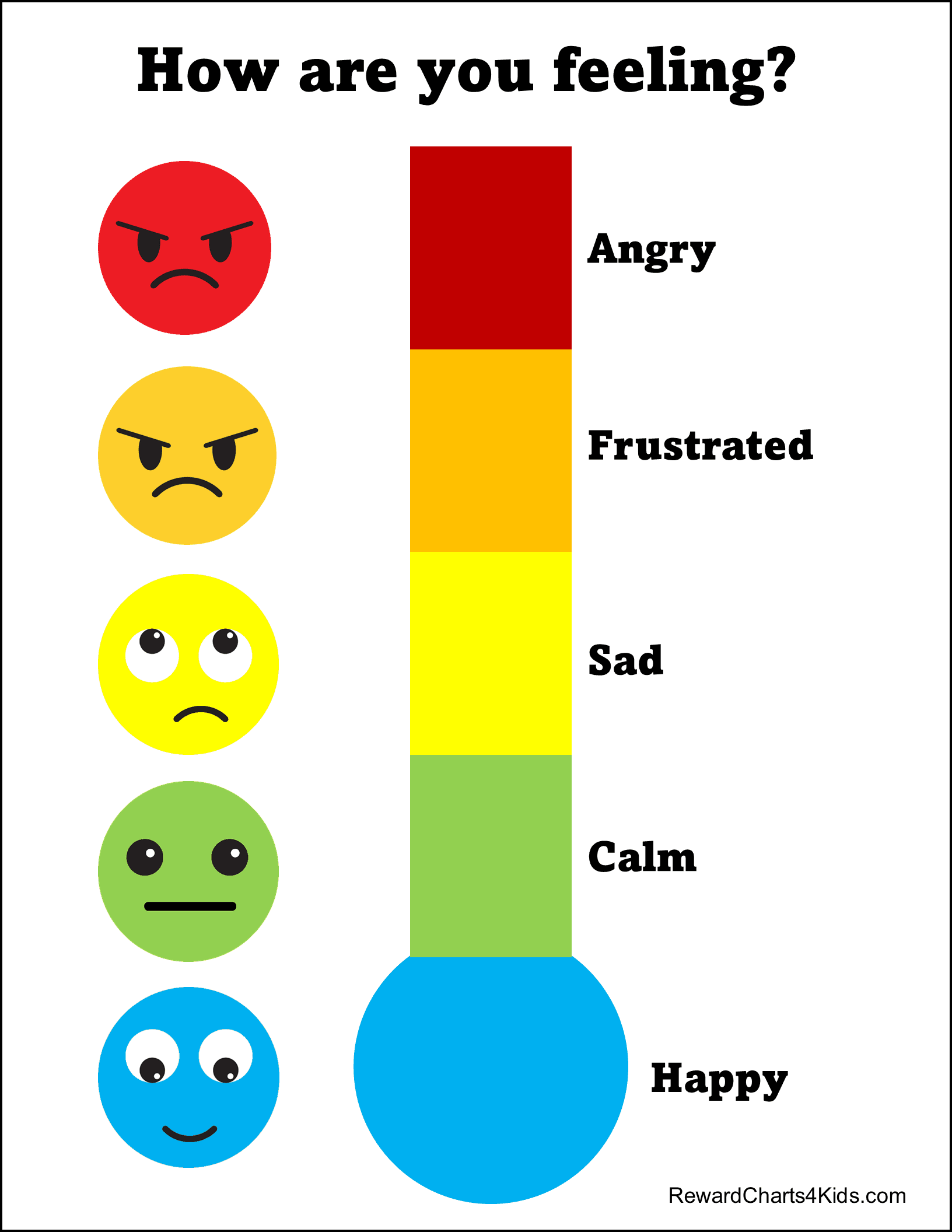 This emotional thermometer will help kids express a range of feelings and scale of emotions. The emotions thermometer is a visual tool to help children understand the wide range of emotions from the blue calm zone to the red zone. It also helps children express emotions and understand the intensity of their emotions.