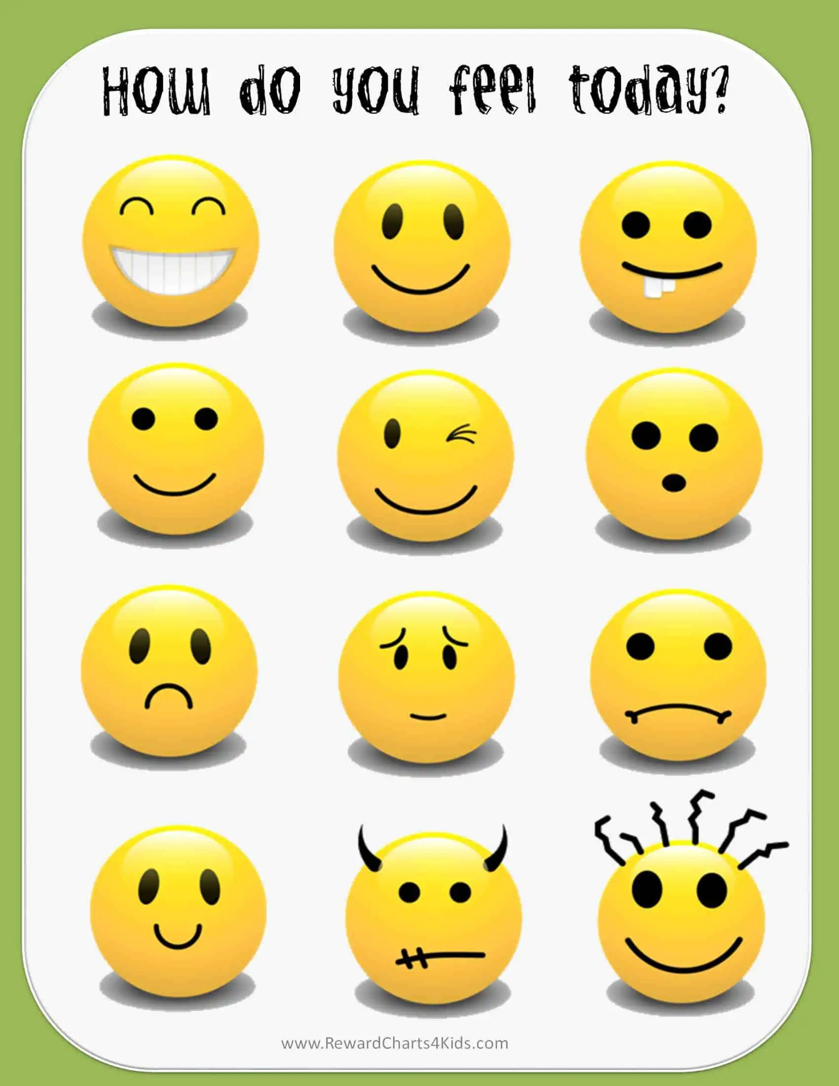 Feeling Chart for Kindergarteners