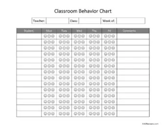 On this page, we provide 8 behavior charts for teachers for individual students or for an entire class.