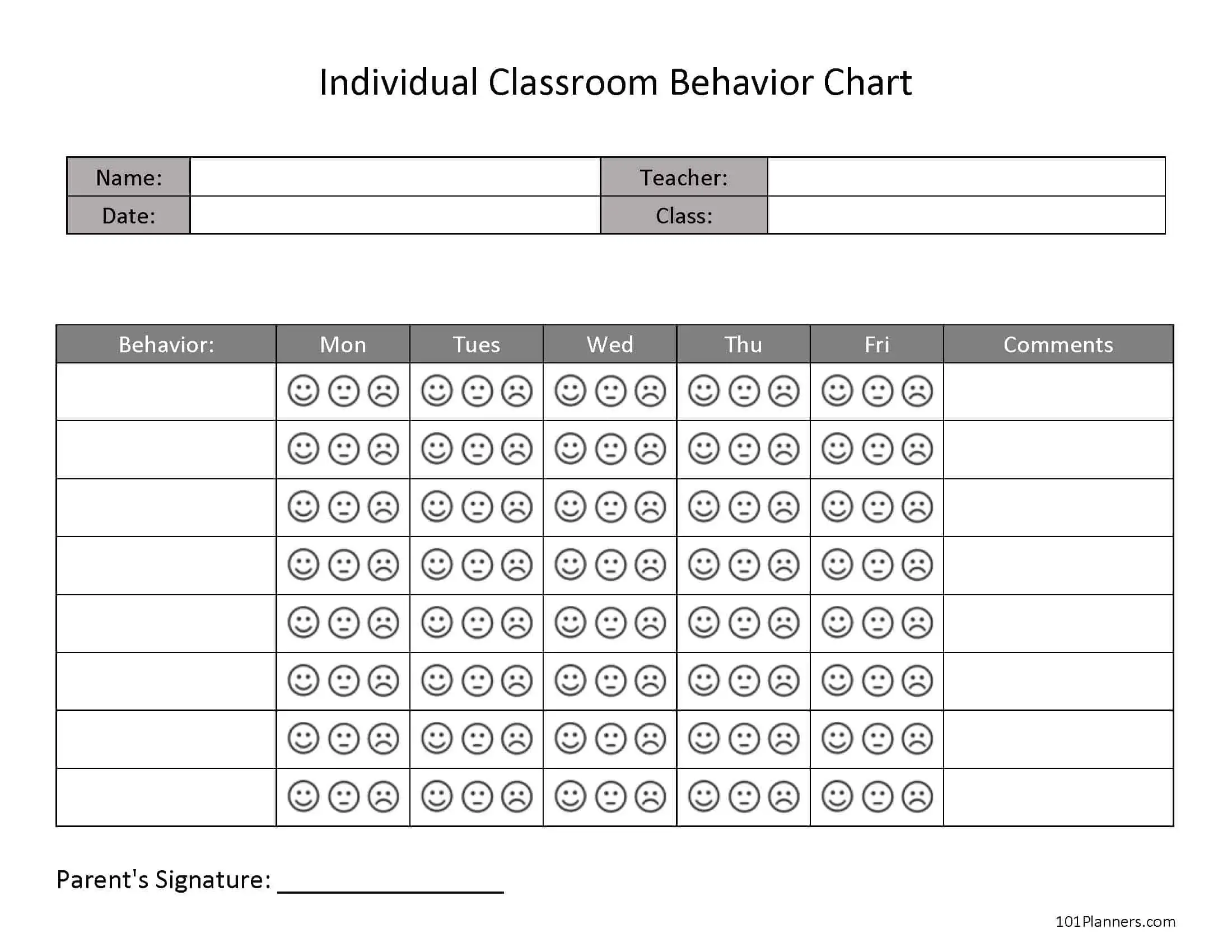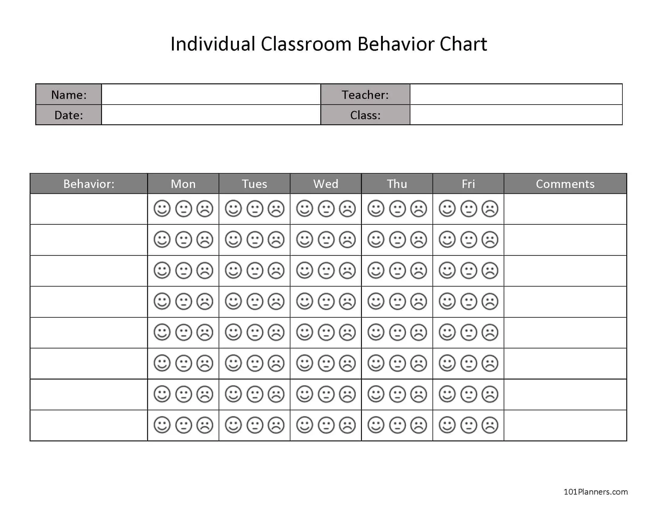 On this page, we provide 8 behavior charts for teachers for individual students or for an entire class.