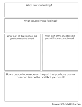 This worksheet distinguishes between things you have control over and things you don’t have control over. It encourages you to focus more on the things you have control over and less on the things you don’t.