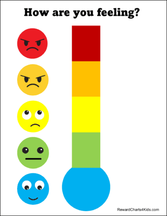This emotional thermometer will help kids express a range of feelings and scale of emotions. The emotions thermometer is a visual tool to help children understand the wide range of emotions from the blue calm zone to the red zone. It also helps children express emotions and understand the intensity of their emotions.