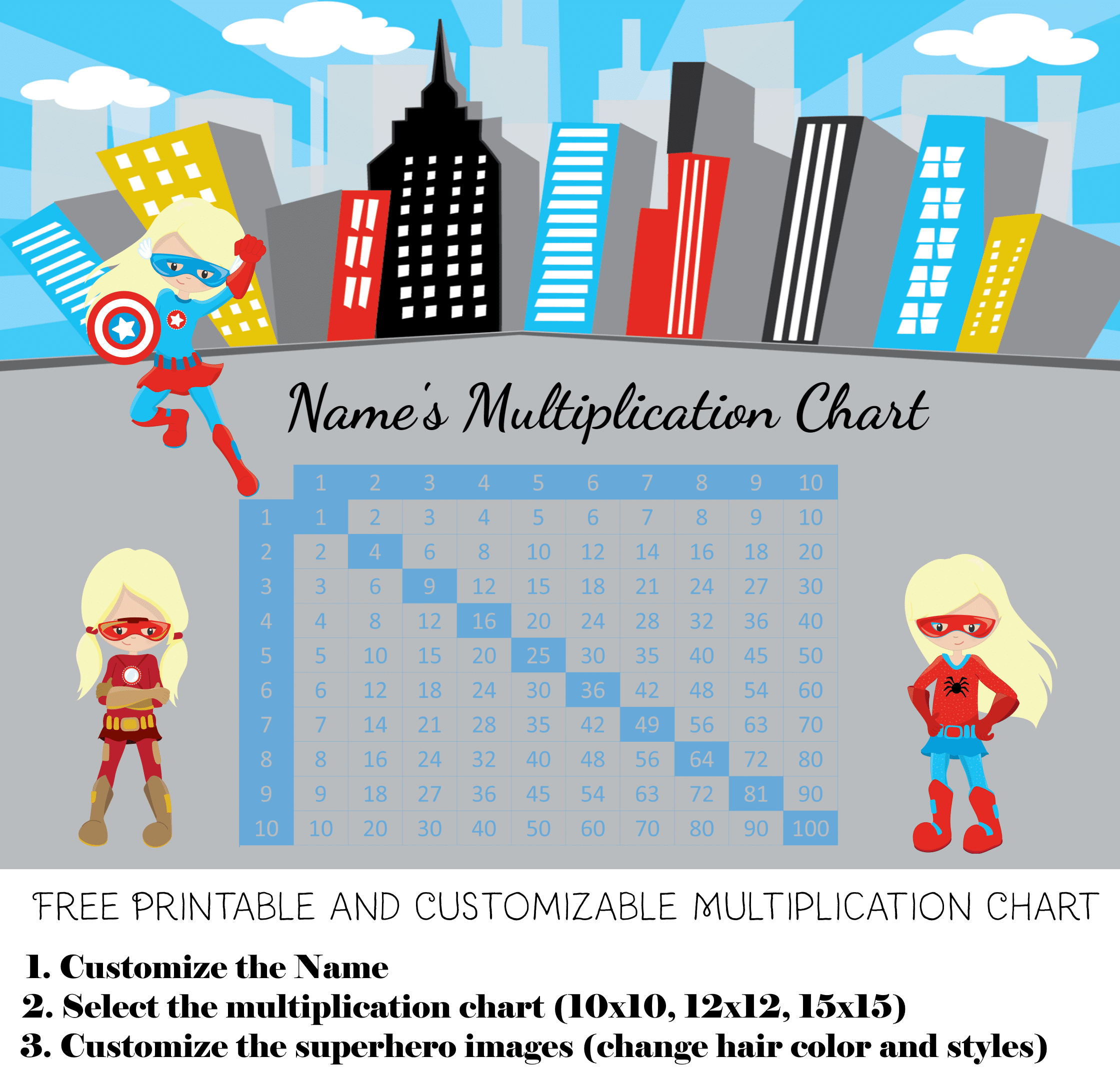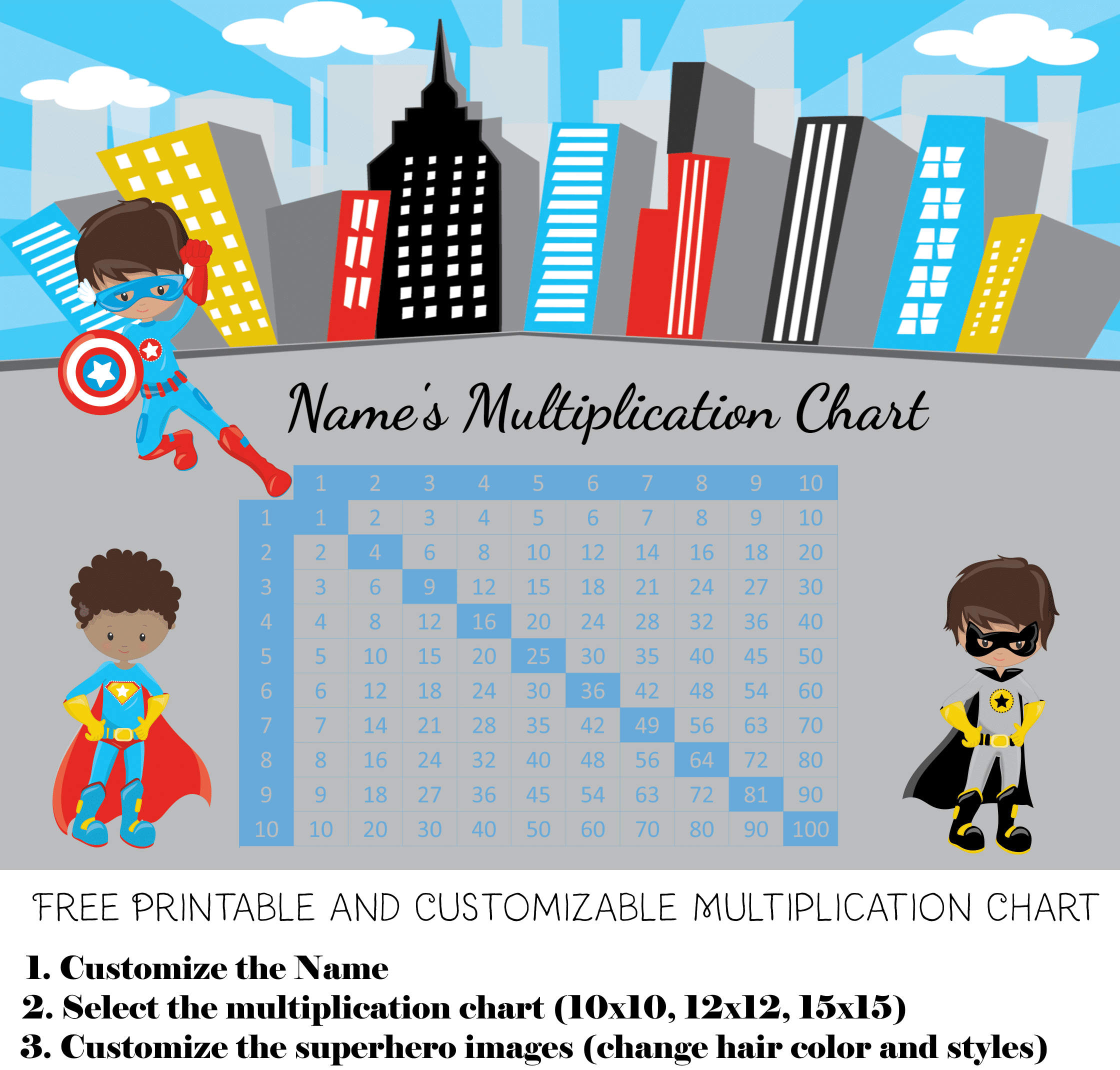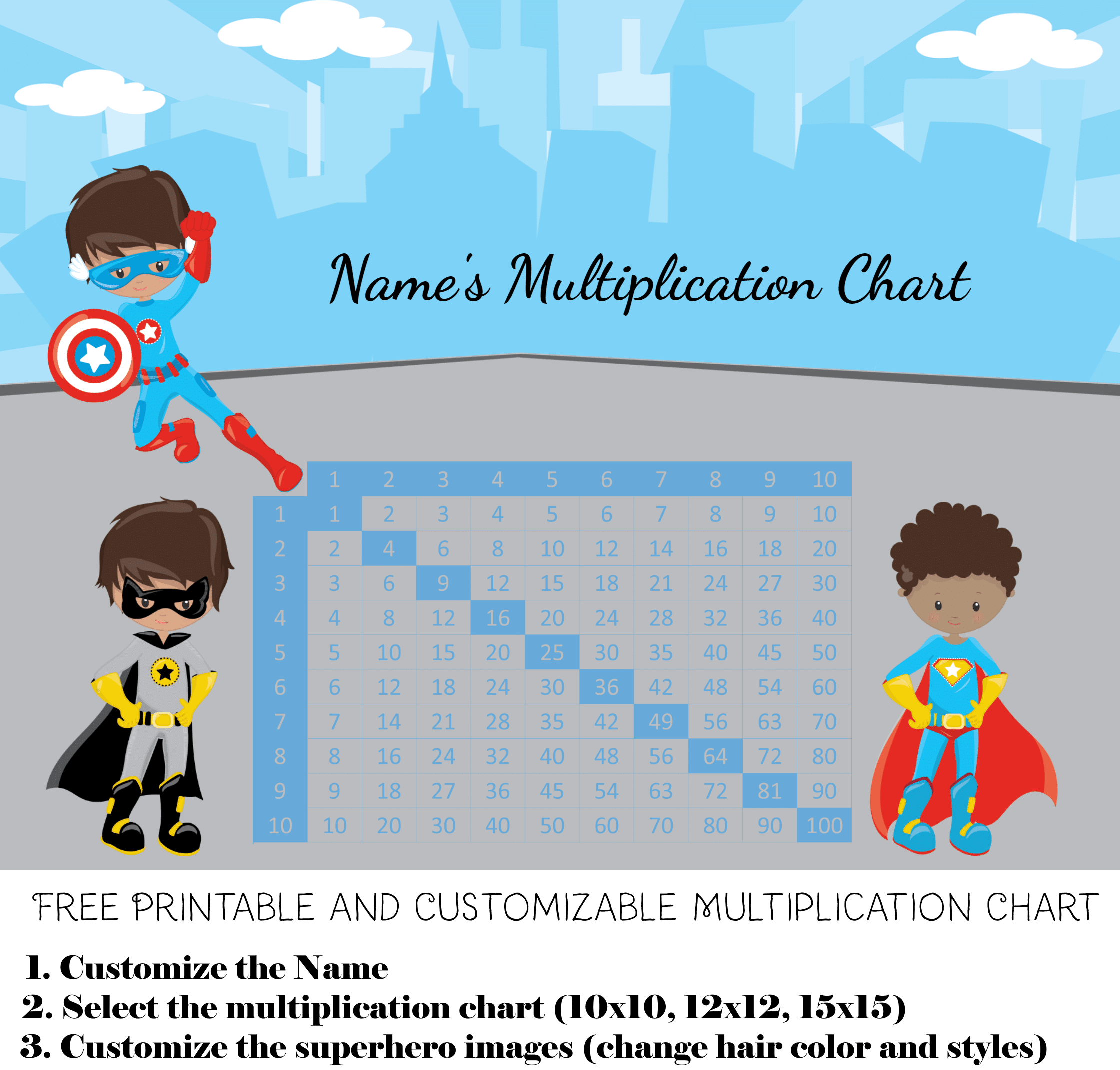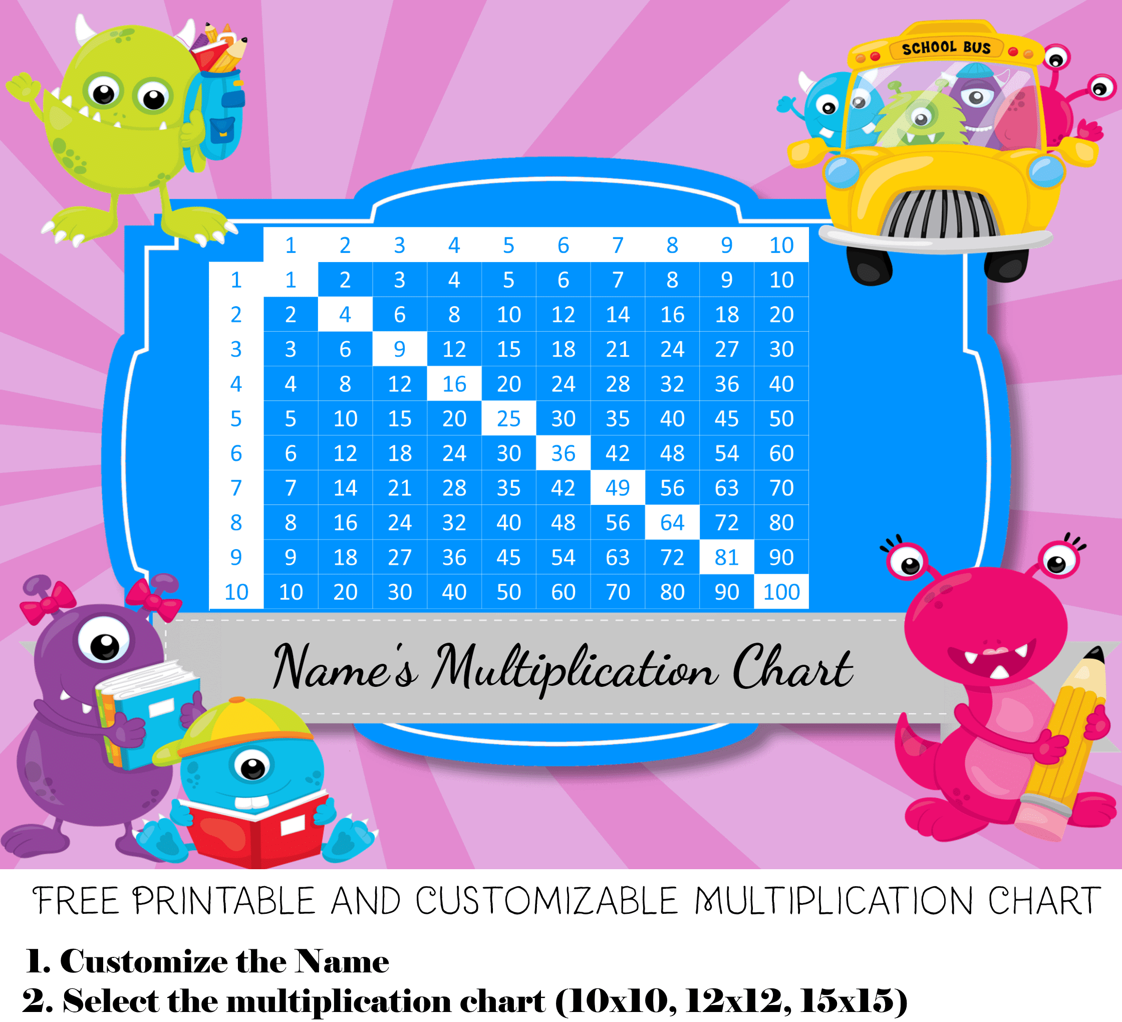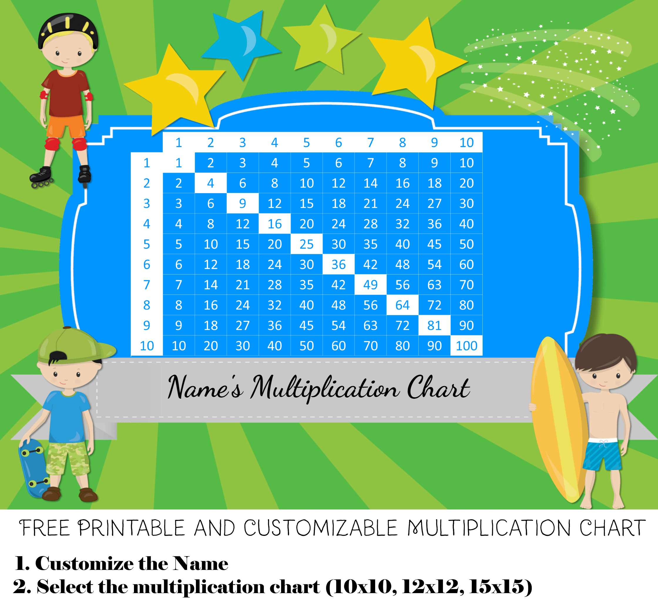 You can also select the multiplication table that will appear on the chart. There are three options, 1-10 (1-100), 1-12 and 1-15. There are also blank multiplication charts for the child to fill out.