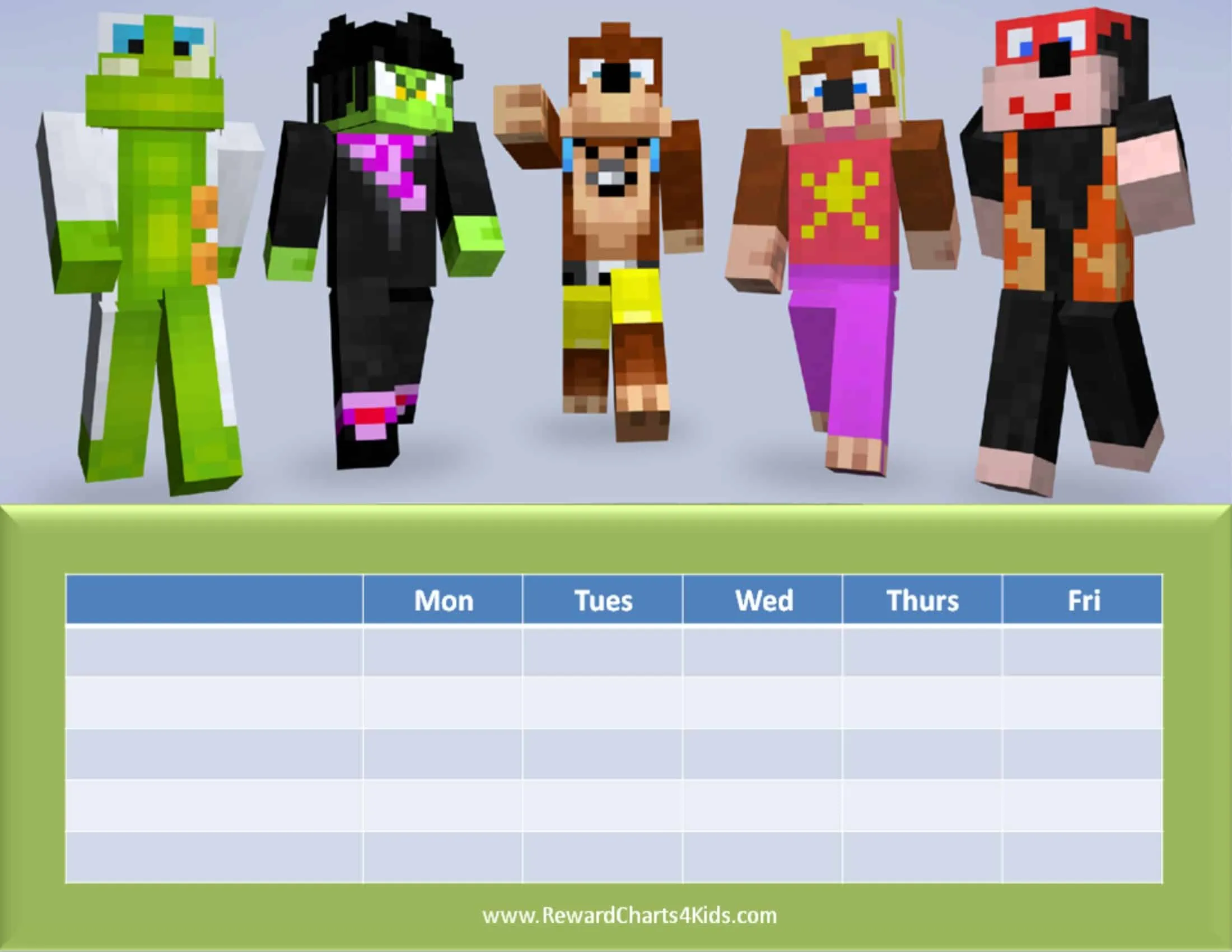 Hi, can you do a 5 day minecraft reward chart for use in school. Monday to friday?